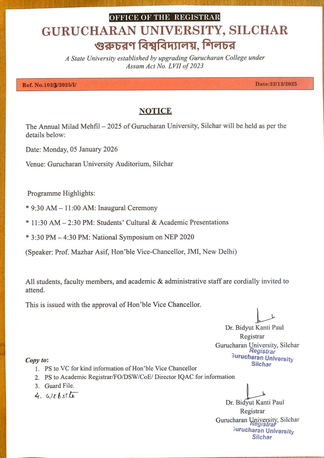 Notice: Conduct of IDC 101 & IDC 201 (Library & Information Science) Examinations Under Assam University