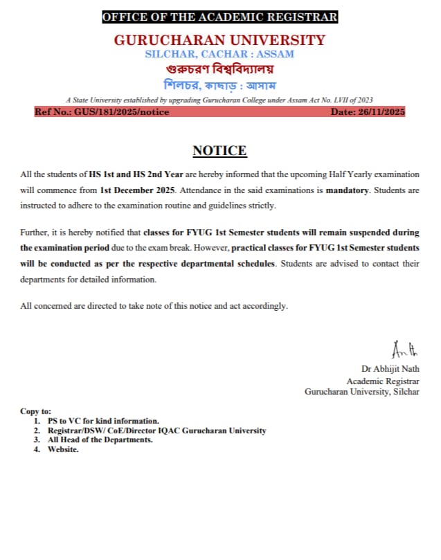 Important Notification Regarding Internal Marks, Attendance, Enrollment and Admit Card Generation for FYUG 3rd and 5th Semester students