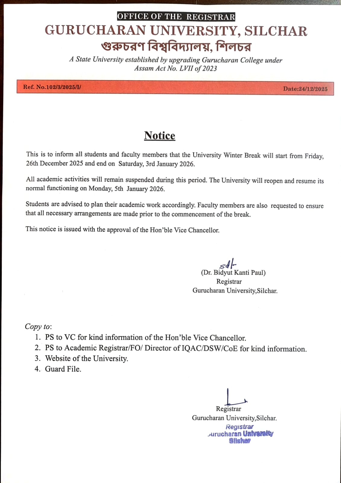 Important Notification regarding Exam on 24th November, 2025